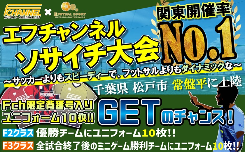 ぜひゼットフットサルスポルト松戸常盤平店で開催したします、『エフチャンネル・ソサイチ大会』にご参加ください!