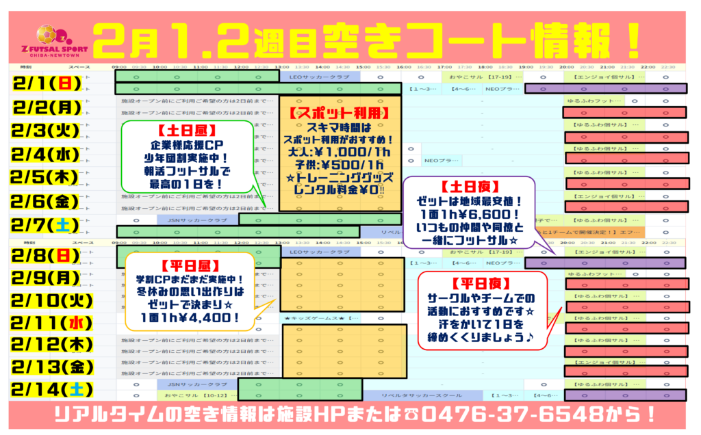 皆さんこんにちは!ゼットフットサルスポルト千葉ニュータウンです♪ 2月もゼット千葉ニューではお得なキャンペーンやイベントが盛りだくさん!はじめましての方もいつも…