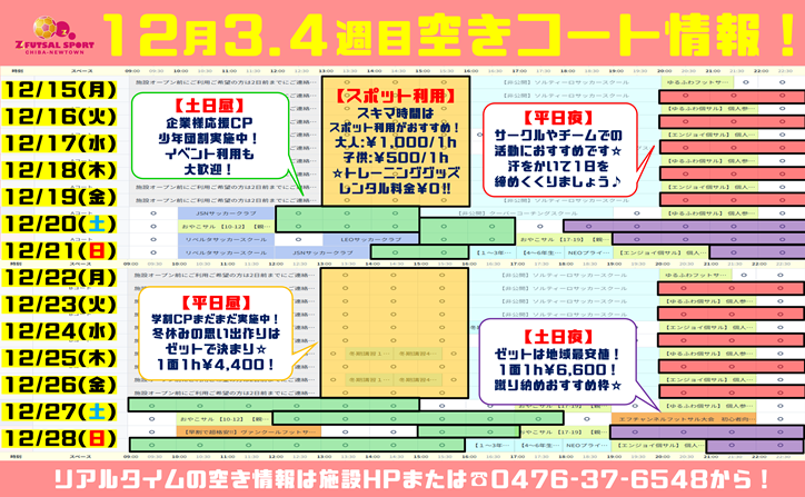 ※年末にかけて空き枠がすぐ埋まるため、コートの予約はお早めに!
