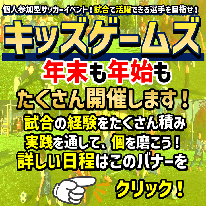 キッズゲームズ「試合で活躍できる選手を目指せ!」 12月も開催!キッズゲームズ最新情報‼ 小学生限定の試合イベント、【キッズゲームズ】の最新情報です!(^▽^)…