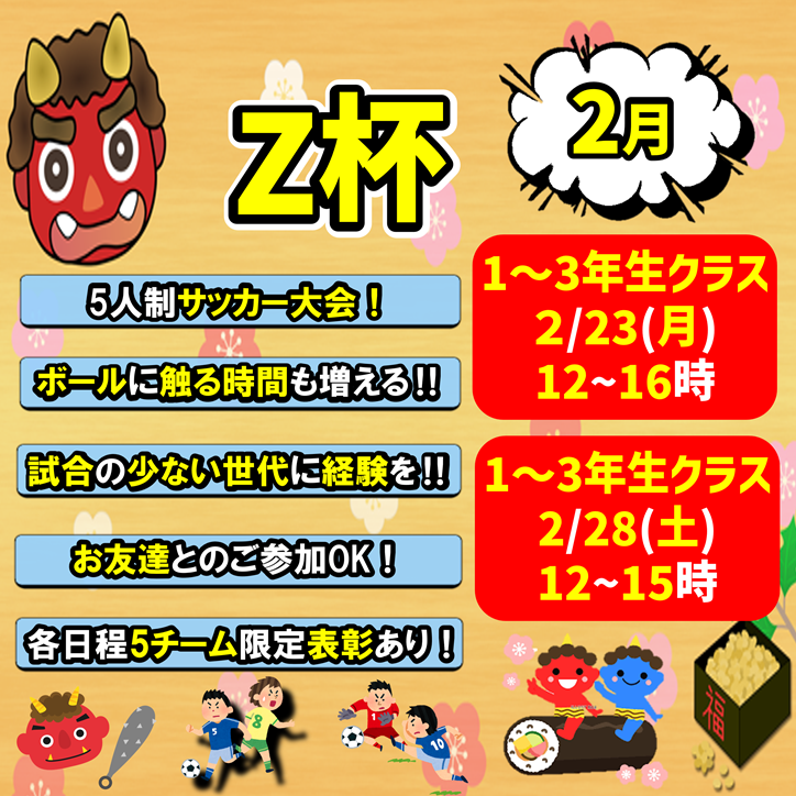 2026年最高のスタートが切れるフットサル大会です! 2026年の最初の思い出作りはゼットふじみで、フットサルで笑って、良い年をスタートしましょう!!(^▽^)…