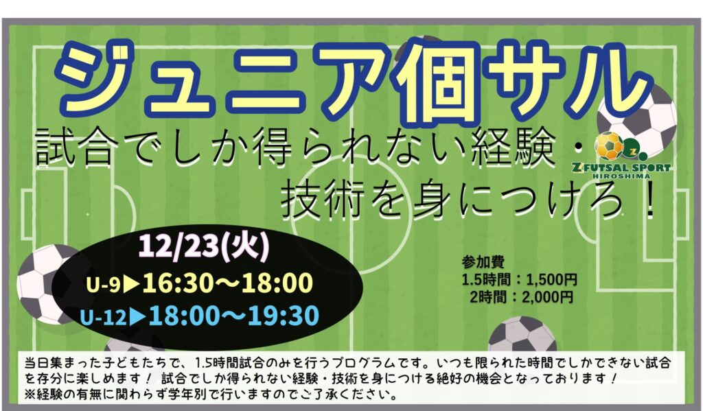 ぜひ、ゼットひろしまのジュニア個サルで、お子さんの成長と頑張る姿を見届けましょう!!
