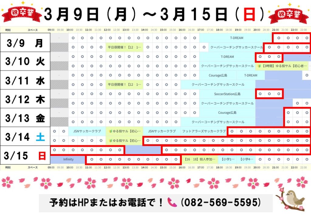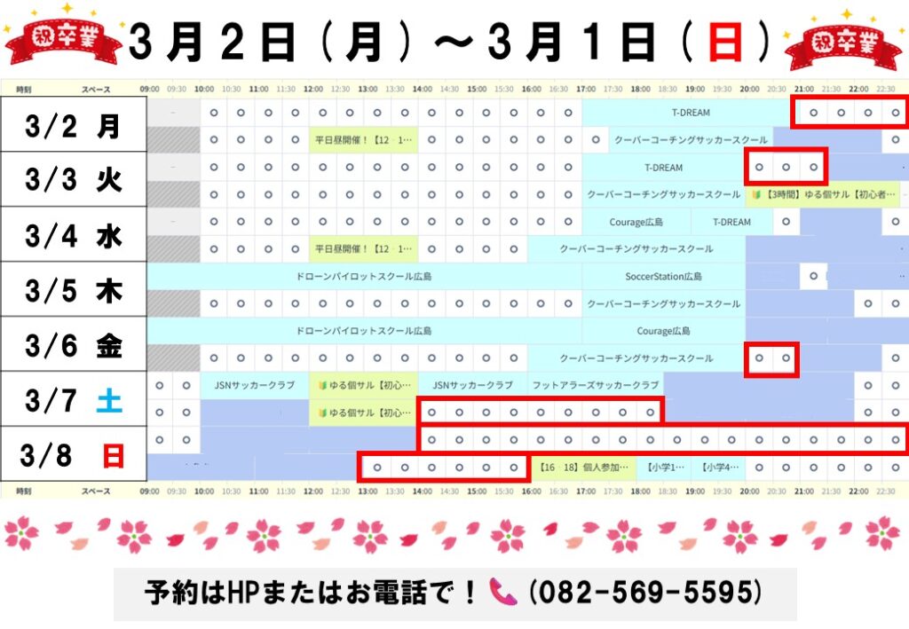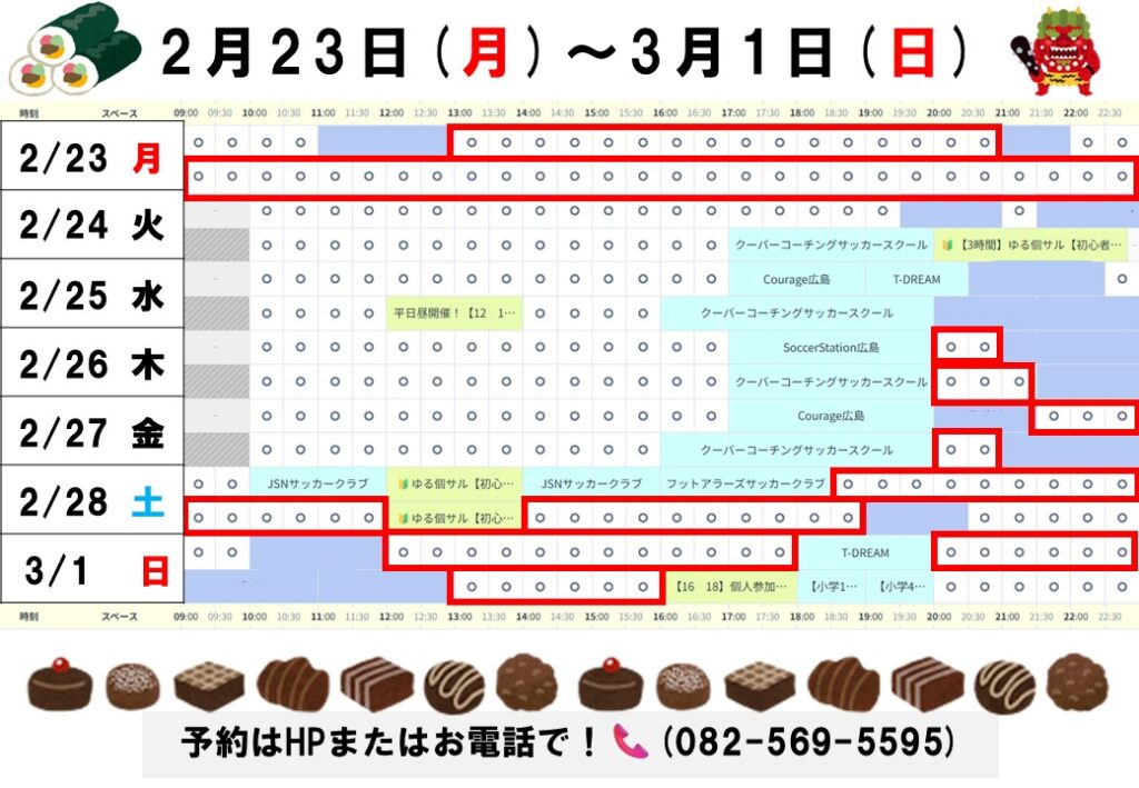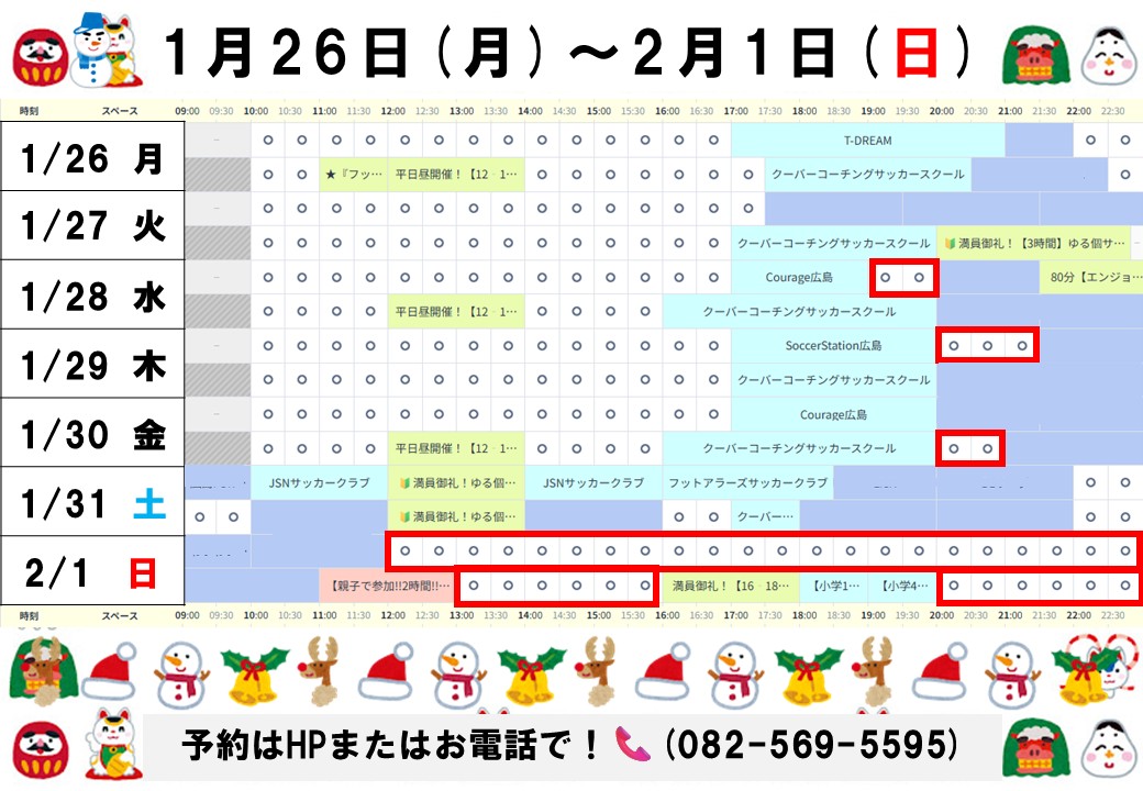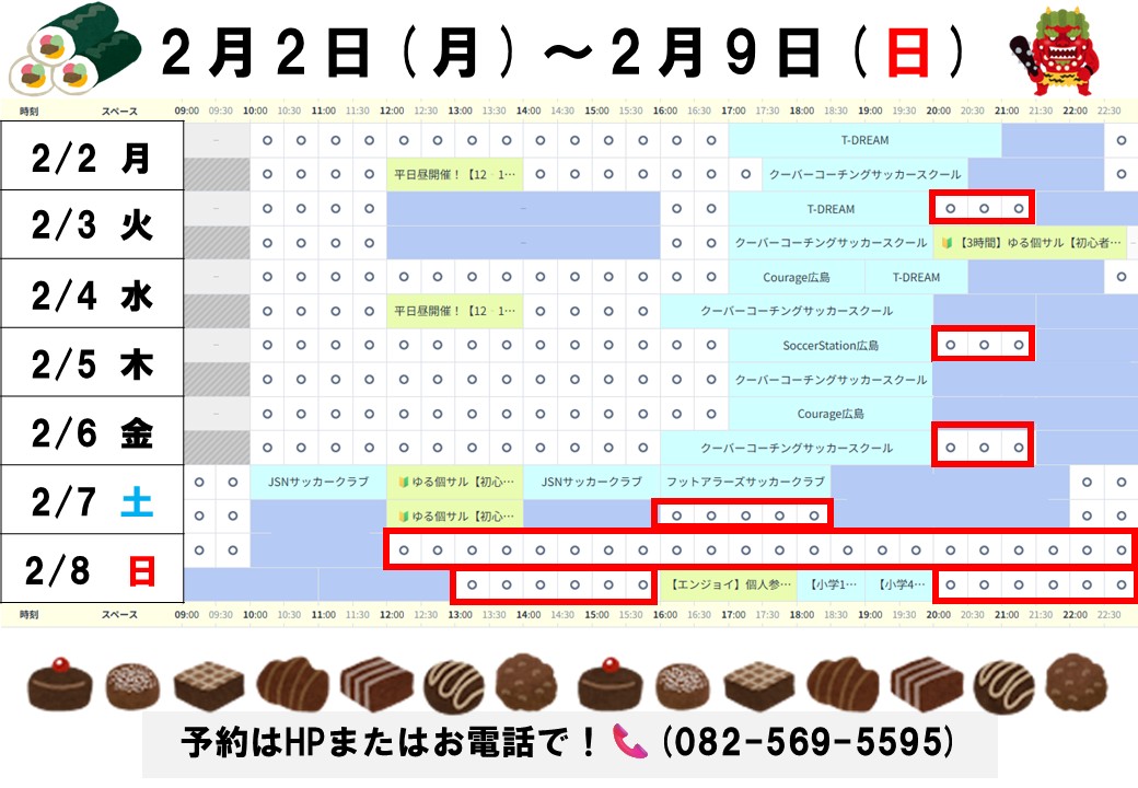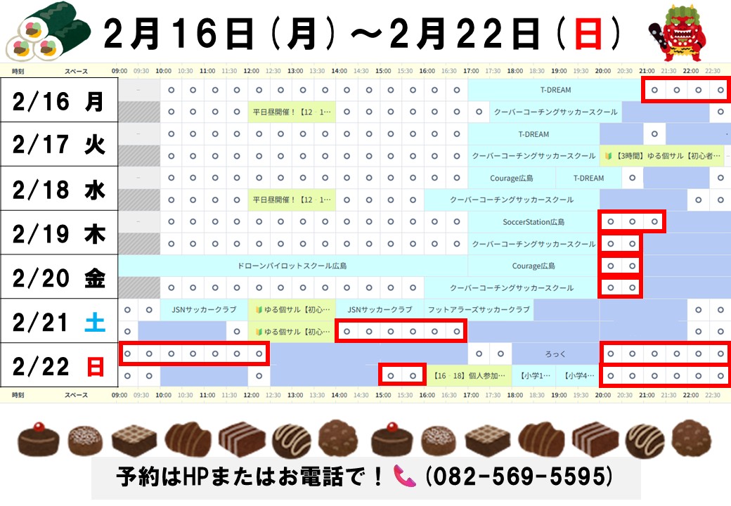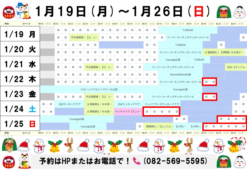 おすすめした時間以外にも平日昼の時間など空いてる時間はありますので予約表でご確認ください!