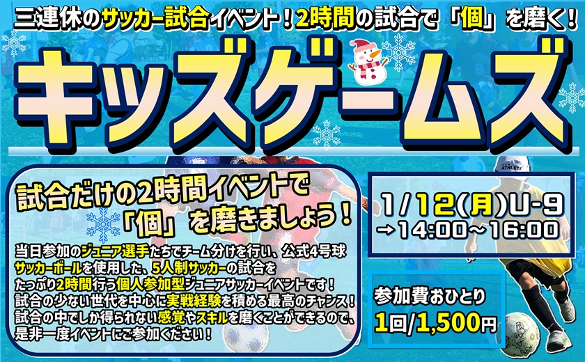 キッズゲームズ「試合で活躍できる選手を目指せ!」 新年三連休!キッズゲームズ最新情報‼ 小学生限定の試合イベント、【キッズゲームズ】がゼット市川にやってきました…