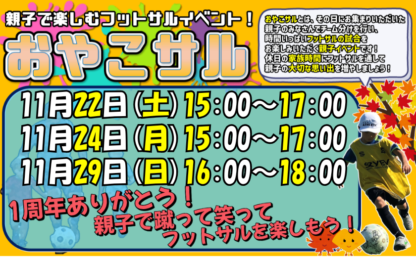 時間いっぱいフットサルの試合をお楽しみいただく親子イベントです!
