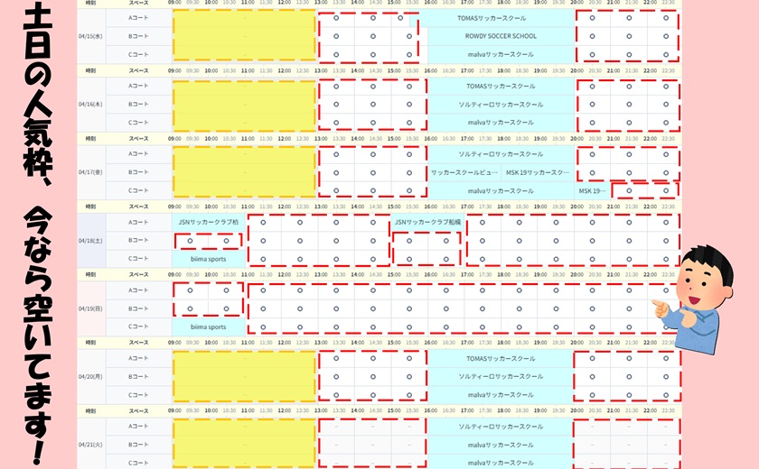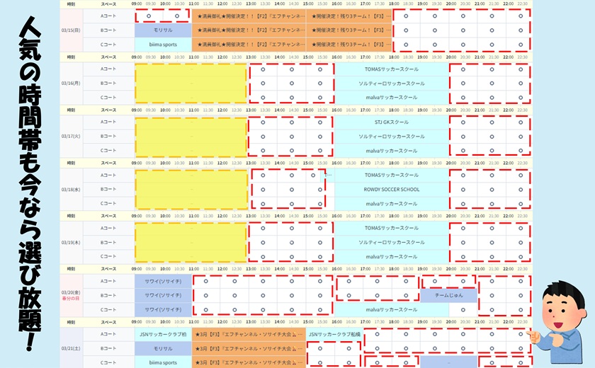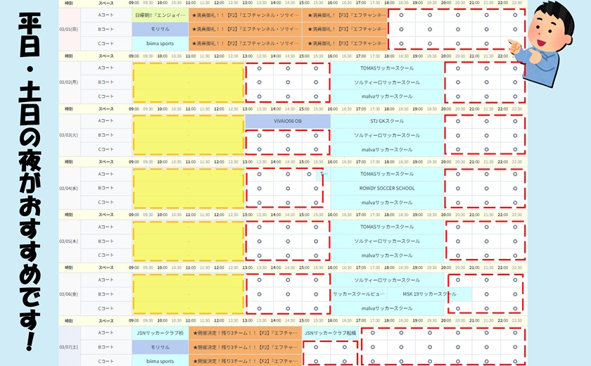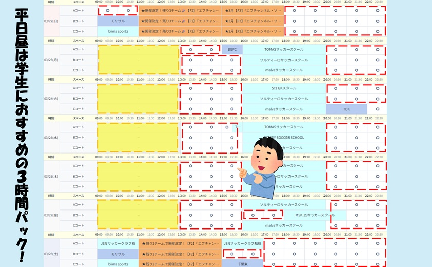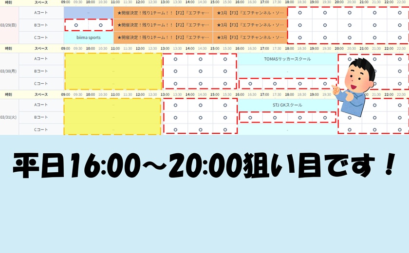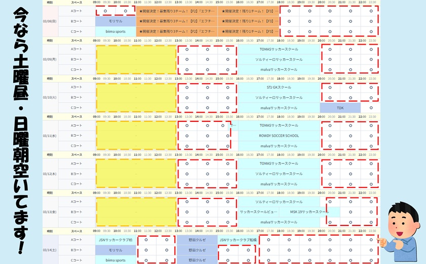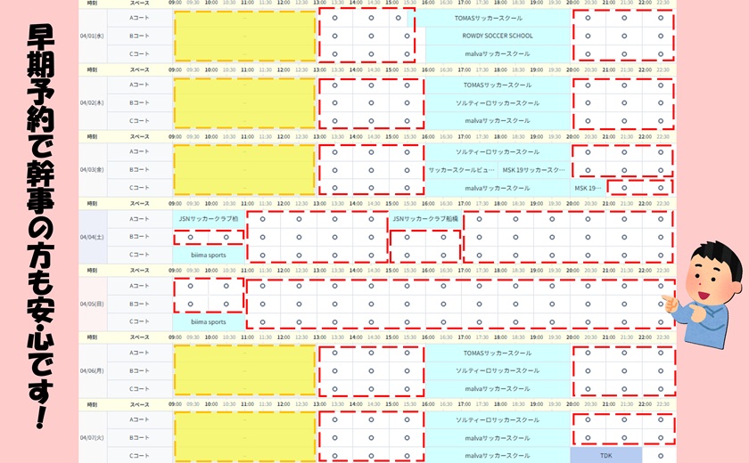 ・対象:1月~2月中に3月利用のレンタルコートをご予約されたチーム