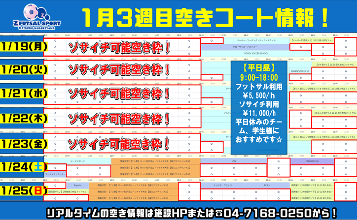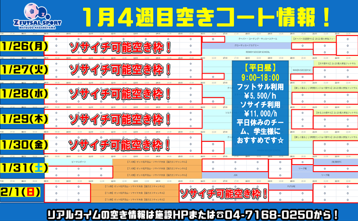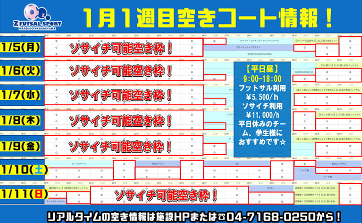 ゼット松戸流山レンタルコート空き枠速報!2026年も”Z”で蹴ろう!!