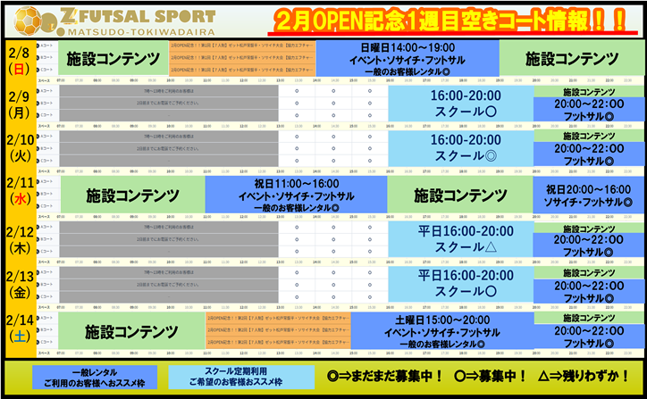 2月8日(日)~2月14日(土)空きコート