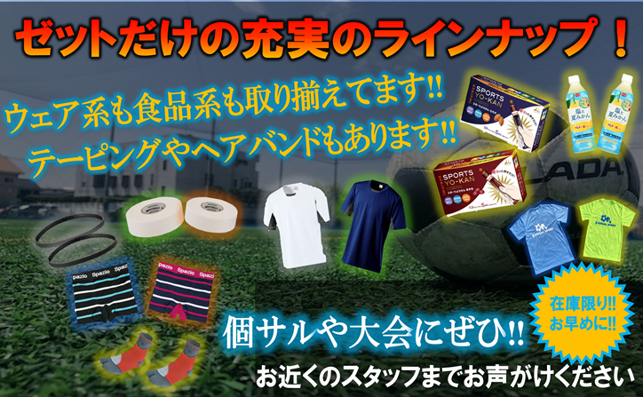 その他、オリジナルシャツやオシャレパンツ、テーピングや軽食など充実のラインナップ‼