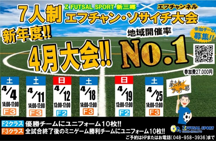 皆さんこんにちは!ゼットフットサルスポルト新三郷です! 【7人制ソサイチマッチメイク】始まります! ソサイチチームをお持ちのみなさま、こんなお悩みはありませんか…