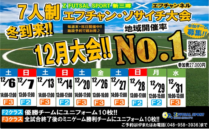 Z FUTSAL SPORT SHIN-MISATOでは、定期的にフットサル大会、ソサイチ大会を開催しております。
