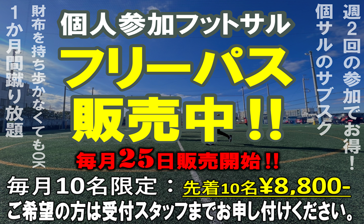 個人参加型フットサルを毎日開催しております!!