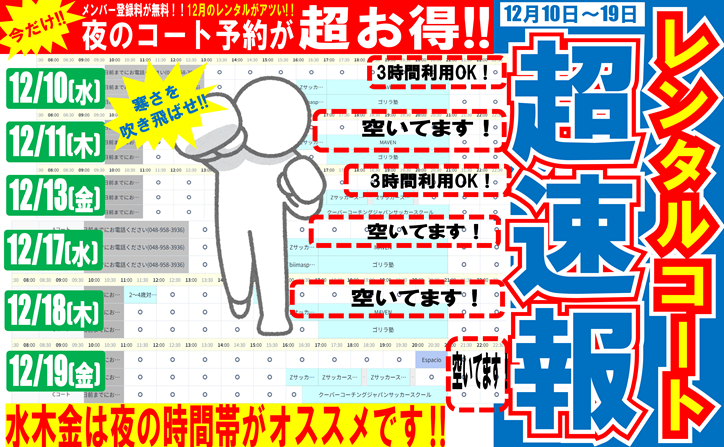 12月は【ゴールデンタイム】の18時~23時まで空き枠があります!