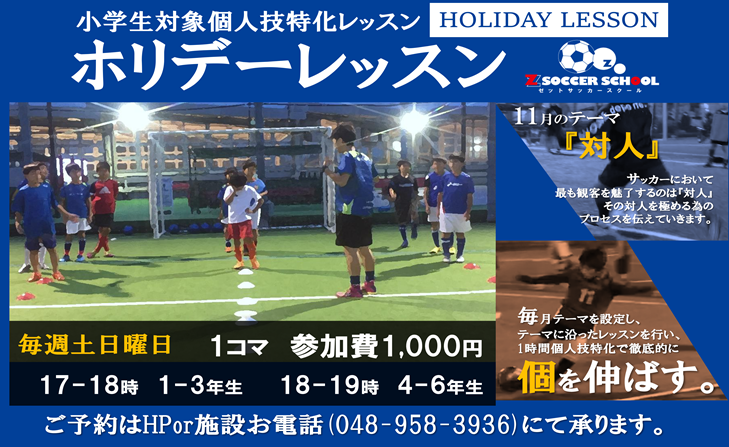 ゼットサッカースクールでは、休日限定で単発レッスンの”ホリデーレッスン”を開催しております。