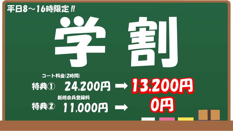 朝の時間を有意義に使いたい方、とにかく安くコートを利用したい方にはこちらのキャンペーン‼