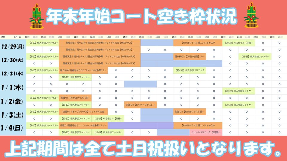 ・2025年12月29日(月)から2026年1月2日(金)は年末年始期間として土日祝扱いとなります。