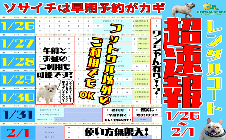 【新着情報】コートレンタル≪超・速報‼≫&土日(全日)or平日(ナイター)定期利用チーム・スクール大募集中!!