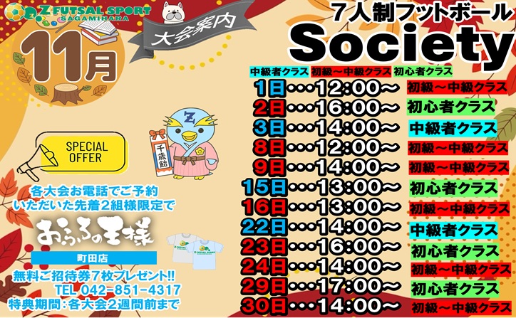 ゼットフットサルスポルトさがみはらでは、フットサル場として 県内最大のフィールドを思う存分楽しんでもらうべく、様々なソサイチのイベントをご用意しております!