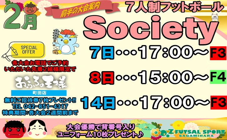 ゼットフットサルスポルトさがみはらのソサイチ大会日程のご案内です!!