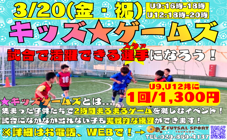 キッズゲームズ!試合で活躍できる選手を目指せ! 小学生限定の個人参加型試合イベント『キッズゲームズ』を開催します! キッズゲームズとは、その日集まった子供たちで…
