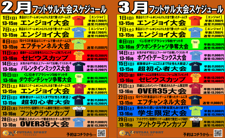 毎月1回開催中の背番号入りユニフォームが貰える『ゼビウスカップ』、『ダウポンチ』や『フットクラウン』などのフットサルメーカーが景品の大会など様々な企画が盛りだくさん!