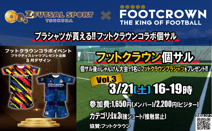 フットクラウン協賛の個サルです!月に1回不定期開催なのでお知らせをお見逃しなく!